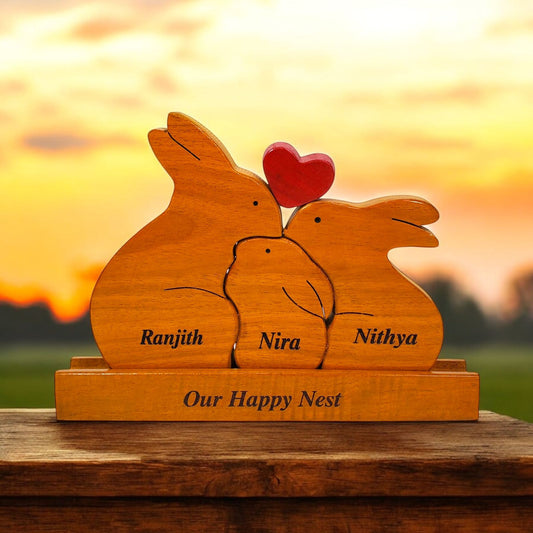 Wooden Rabbit Family Keepsake | Polished surface with shiny finish | Fungus Proof