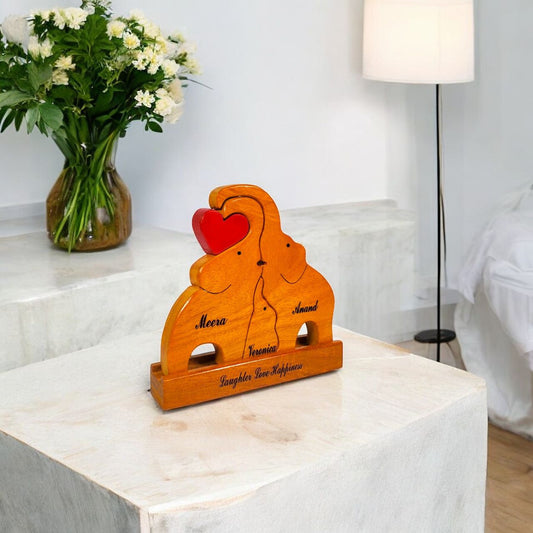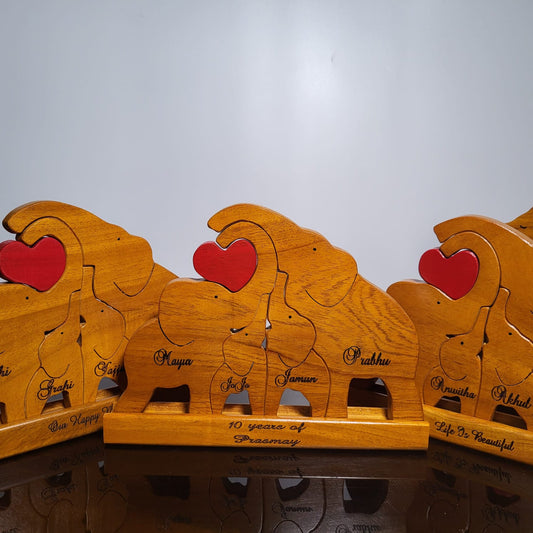 Wooden Elephant family Keepsake | Family of 4 | Polished surface with shiny finish | Fungus Proof