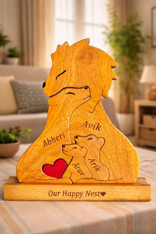 Wooden Lion family keepsake | Polished surface with shiny finish | Fungus Proof
