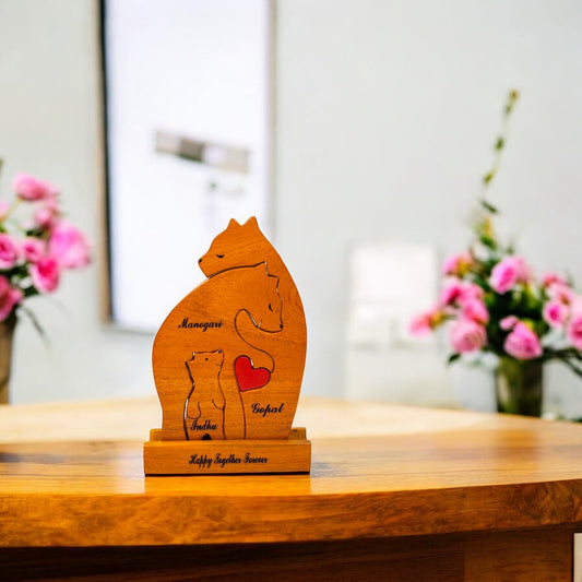 Wooden Bear Family Keepsake | Polished surface with shiny finish | Fungus Proof
