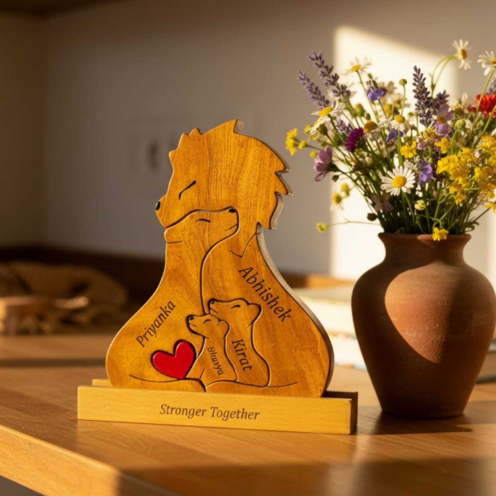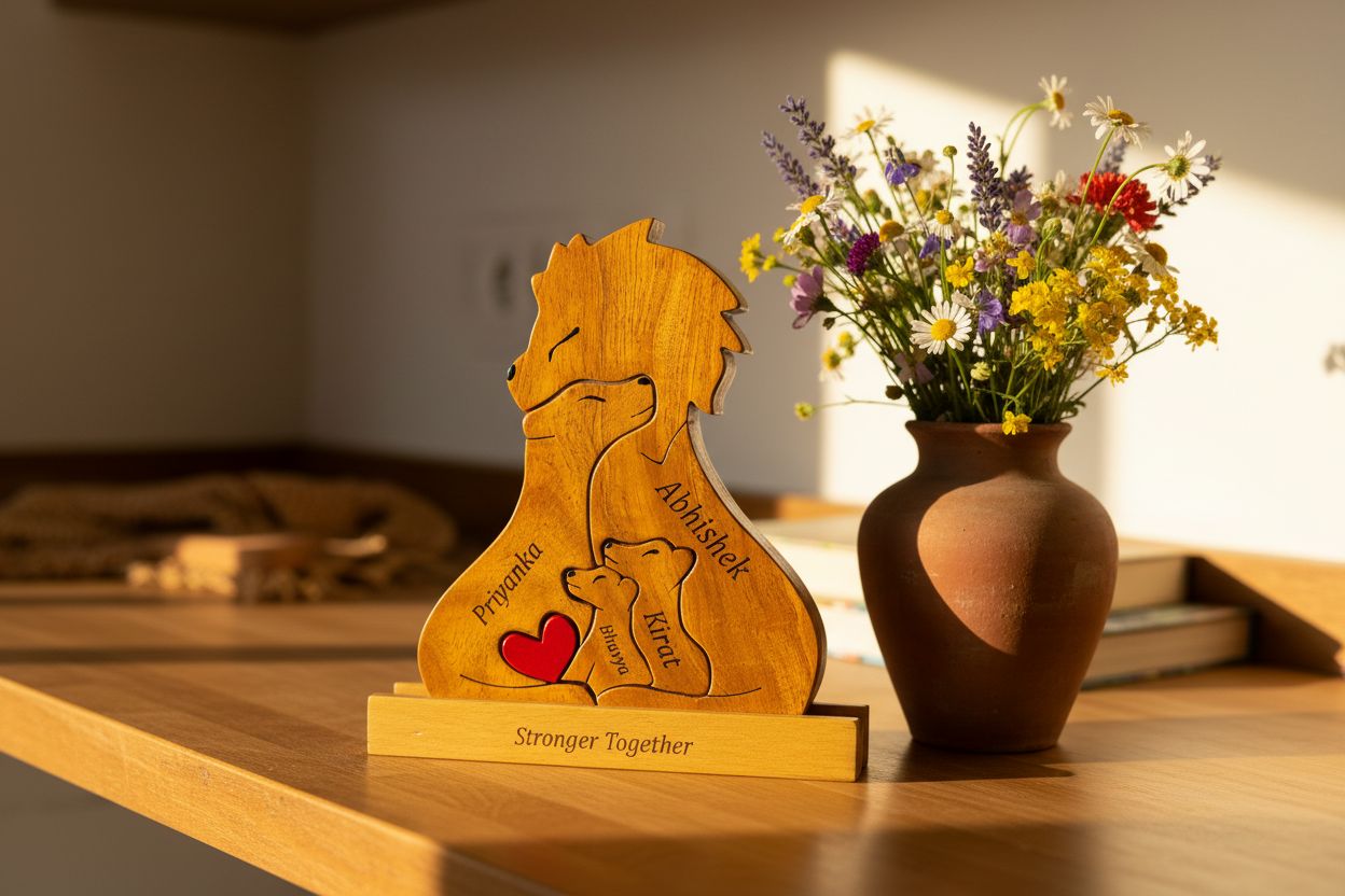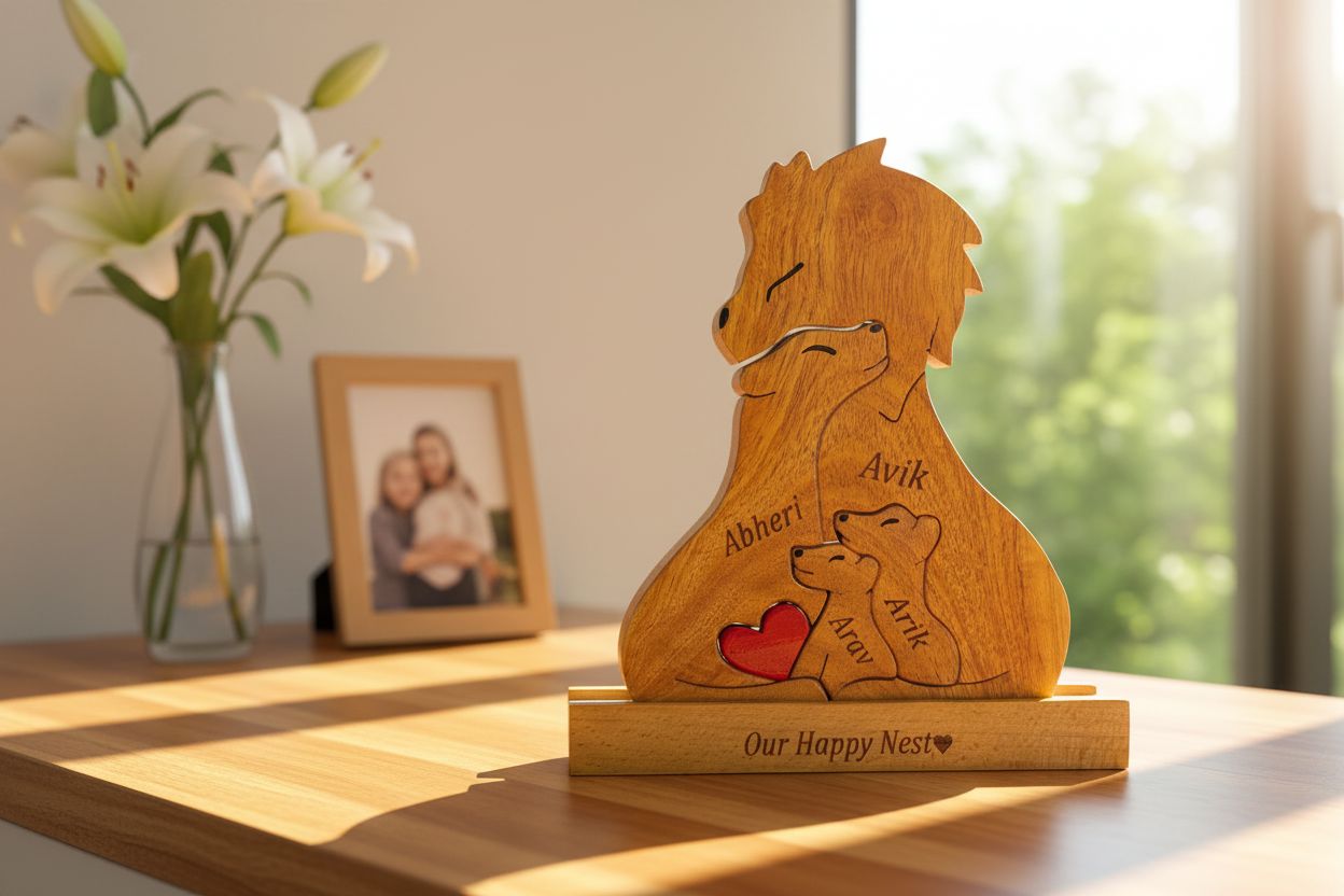 இந்த அபிமான சிங்க நினைவுப் பரிசுடன் உங்கள் அன்பையும் குடும்பத்தையும் கொண்டாடுங்கள். மரத்தில் இருந்து கைவினைப்பொருளானது, இது ஆண்டுவிழாக்களுக்கு சரியான பரிசு. ஒரு வகையான தொடுதலுக்காக உங்கள் குடும்பத்தின் பெயருடன் அதைத் தனிப்பயனாக்கவும். எந்த வீட்டிற்கும் ஒரு அழகான கூடுதலாகும். மகிழ்ச்சியில் கர்ஜனை!